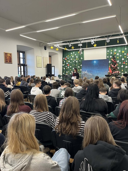Przystrojone choinki w salach lekcyjnych oraz na korytarzach sprawiają, że w murach I LO w Zamościu od dawna panuje świąteczny nastrój. 12 grudnia w szkole można było wyjątkowo poczuć magię świąt Bożego Narodzenia - wszystko to za sprawą koncertu kolęd, przygotowanego przez naszych uczniów.