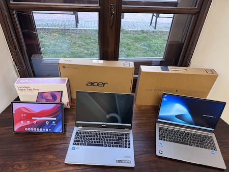 W ramach projektu „Nowe komputery przenośne (laptopy i laptopy przeglądarkowe) oraz tablety do dyspozycji uczniów” (C15G) nasza szkoła została doposażona w nowoczesny sprzęt komputerowy, który będzie wykorzystywany w codziennej pracy dydaktycznej. Do dyspozycji uczniów i nauczycieli trafiło 85 laptopów, 25 laptopów przeglądarkowych Chromebook oraz 51 tabletów.