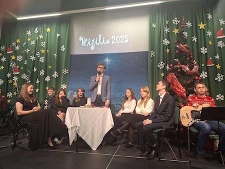 Jednym z nich było przedstawienie, które przygotowali licealiści pod opieką p. Anny Szczygieł. W tym roku - zamiast tradycyjnych jasełek - na scenie auli I LO można było podziwiać montaż słowno-muzyczny. Oprócz pięknego odśpiewania kolęd i pastorałek przez szkolny chór, którym opiekuje się p. Rafał Pudełko, posłuchać można było także tekstów skłaniających do refleksji na temat religijnej istoty Świąt Bożego Narodzenia. Oryginalne przedstawienie wprowadziło widzów w klimat Świąt, a także przypomniało o tym, że Święta to nie tylko prezenty i choinka, ale przede wszystkim duchowe przeżycie. Po części artystycznej Dyrektor I LO w Zamościu, Pani Agnieszka Kowal złożyła ciepłe, świąteczne życzenia licealistom, nauczycielom oraz wszystkim pracownikom szkoły.
