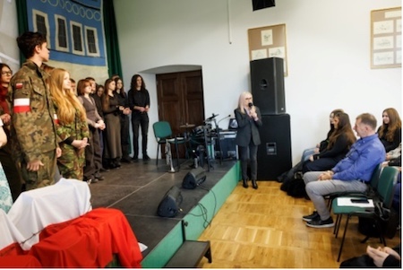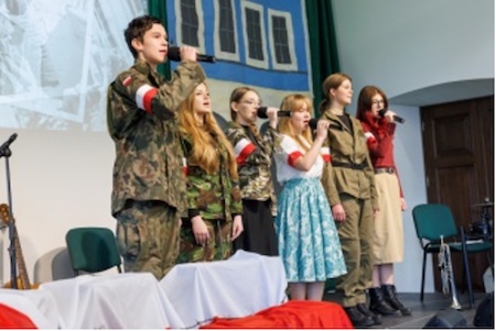 Znany wszystkim utwór „Hej chłopcy bagnet na broń” zaśpiewali, pełni autentycznego zaangażowania popartego talentami wokalnymi uczniowie: Oliwia Bielec, Karolina Greszta, Joanna Łęcka, Iga Grątkowska, Julia Muda, Adam Minkiewicz, przy akompaniamencie Agnieszki Turos, Marty Słotwińskiej, Malwiny Piwińskiej oraz Karola Maciochy. Kolejne zaśpiewane przez nich pieśni powstańcze wywołały u publiczności łzy wzruszenia.