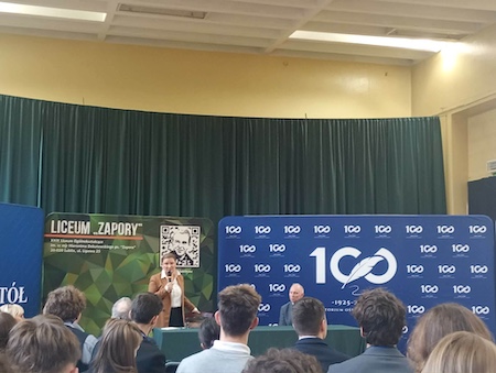 Delegacja szkoły w składzie: Maria Jakubczak, Marianna Sachajko oraz Julia Muda z klasy 4f wraz z opiekunem Samorządu Uczniowskiego Mariuszem Farionem mieli okazję uczestniczyć w konferencji z Pauliną Piechną-Więckiewicz Podsekretarzem stanu w Ministerstwie Edukacji Narodowej Polski, dotyczącej przemocy wśród młodzieży. Spotkanie odbyło się w XXIX Liceum im. cc. mjra Hieronima Dekutowskiego ps. Zapora w Lublinie. Podczas spotkania w którym udział wzięły delegacje szkół z całego województwa uczniowie mieli okazję zapytać minister oraz Lubelskiego Kuratora Oświaty o sprawy dotyczące systemu edukacji i szkolnictwa oraz wysłuchać krótkiego wykładu dotyczącego zdrowia psychicznego oraz hejtu wśród rówieśników.