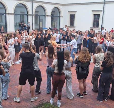 Następnie na szkolnym dziedzińcu rozpoczęła się wspólna zabawa – taniec, śmiech i muzyka towarzyszyły wszystkim przez resztę dnia.