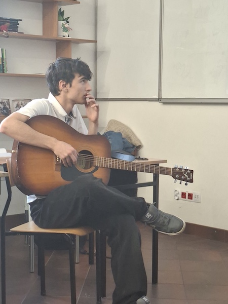 Atmosfera panująca na lekcji p. Beaty Wasilewskiej-Wnuk była nie do podrobienia! Jeden z prelegentów wystąpił nawet w historycznym stroju, oddając ducha dawnych wieków, podczas gdy drugi z uczniów dopełnił całości akustycznymi dźwiękami gitary, imitującymi dawne melodie.
