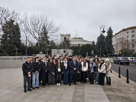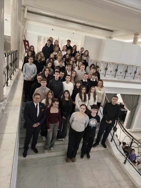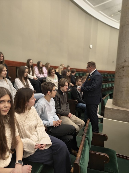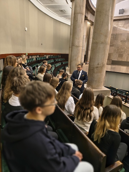 W trakcie wizyty uczniowie mieli możliwość uczestniczenia w otwarciu 46. posiedzenia Sejmu, podczas którego obradowano m.in. nad projektem budżetu państwa na 2026 rok. Zwiedzili także hol główny, gdzie znajdują się tablice upamiętniające parlamentarzystów poległych w czasie II wojny światowej oraz ofiary katastrofy smoleńskiej.